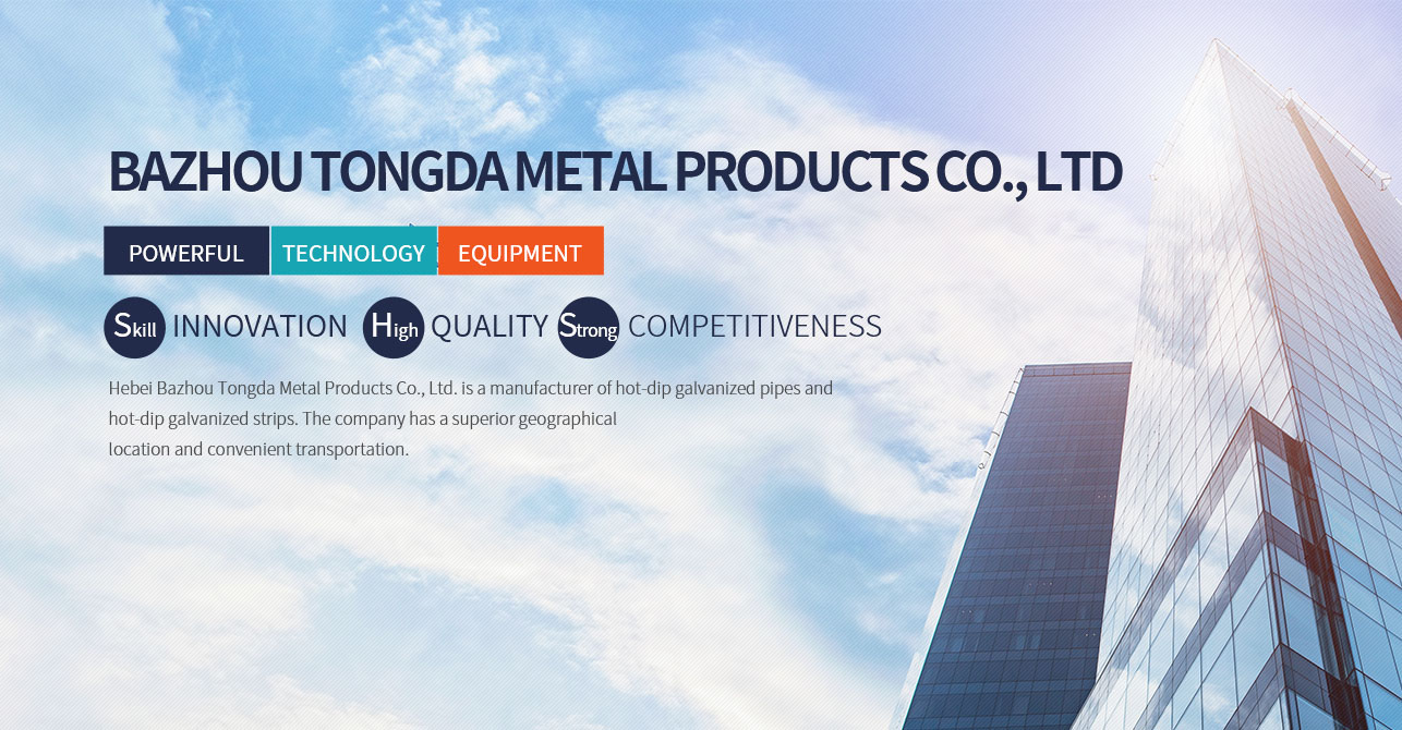 Hebei Bazhou Tongda Metal Products Co., Ltd. is a manufacturer of hot-dip galvanized pipes and hot-dip galvanized strips. The company has strong economic strength. The company has an advantageous geographical location and convenient transportation. It is located in Shengfang Town, the intersection of the four major cities of Beijing, Tianjin and Baocang. As the company continues to grow and develop, it has set up a branch: Yongqing Longtai Metal Products Co., Ltd. A good investment environment provides a reliable guarantee for the development of our company. The company is a contract-honoring and trustworthy enterprise in Hebei Province, and has been rated as an AAA credit enterprise.